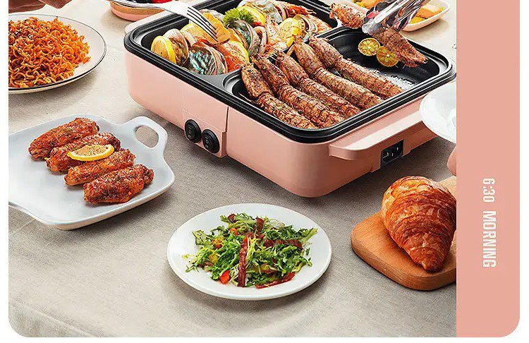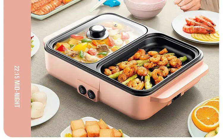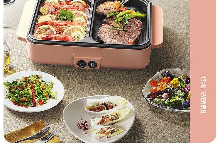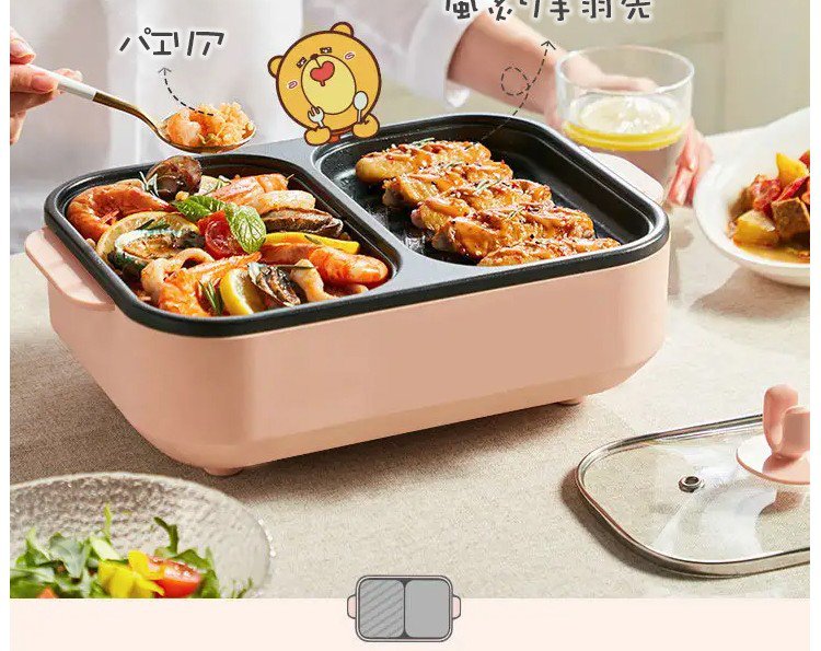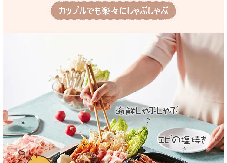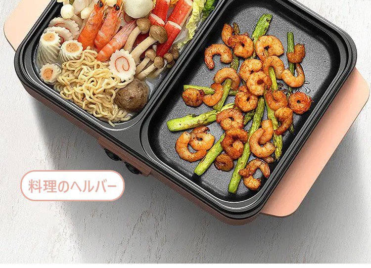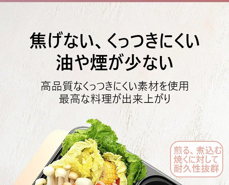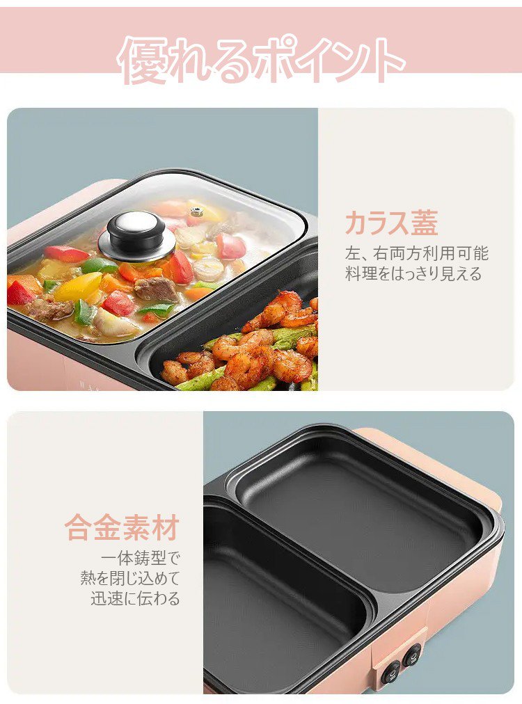 【多機能一体式調理鍋】煮込む、しゃぶしゃぶ、炒める、煎る、焼く、使い分けて料理を作る、くっつきにくいコーティング、油と煙を少量に、2段階温度調節可能
