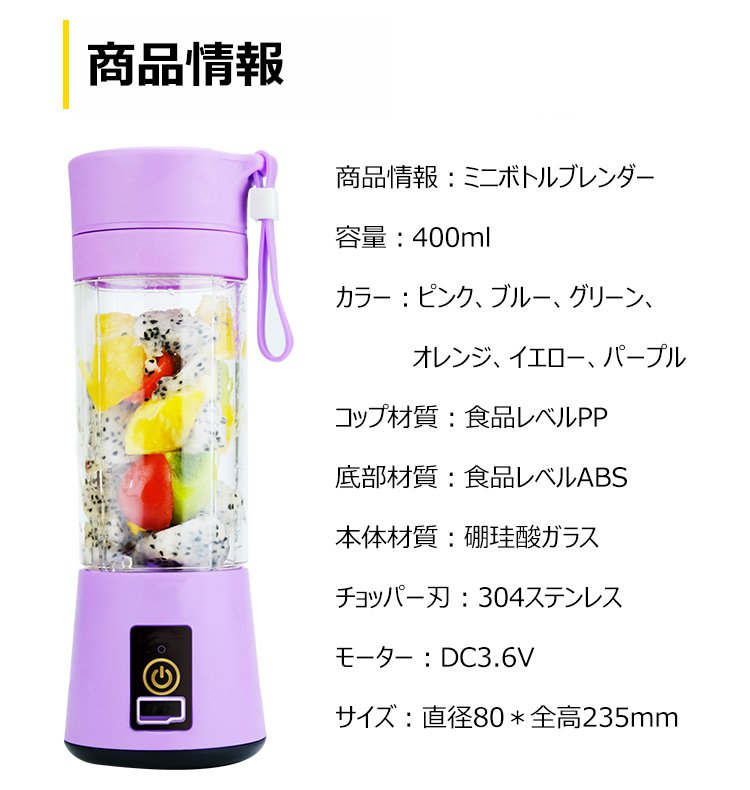 【多機能ミニボトルブレンダー】電動式、軽量、操作簡単、効率的、洗浄しやすい